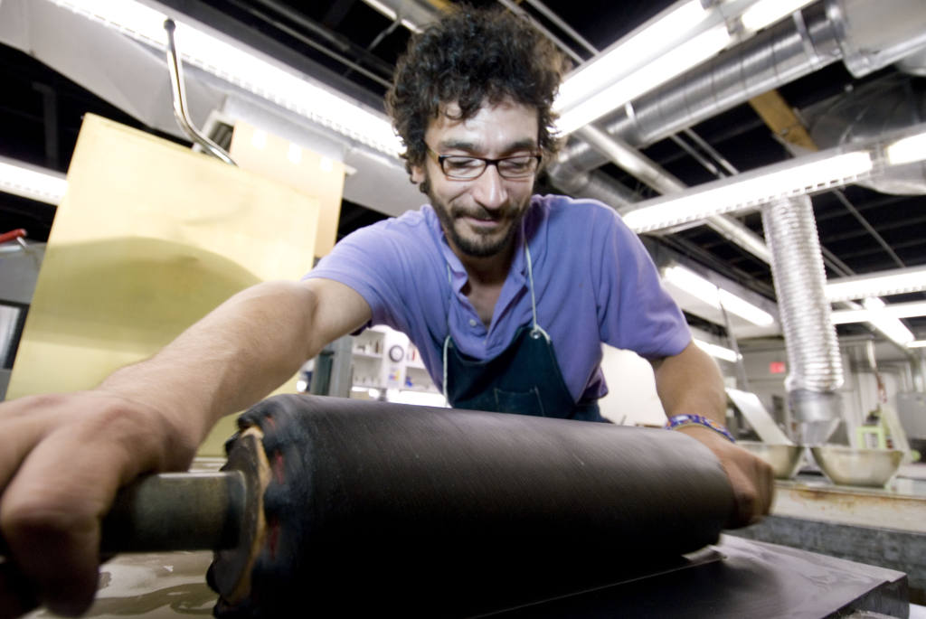 If you want to make the Super-Ducks real, have marketing ideas, or would like to purchase a lithograph, please contact the artist at Gaetanolaroche@yahoo.com. Here he is working on Farmer Duck at the Tamarind Institute of Lithography in New Mexico.